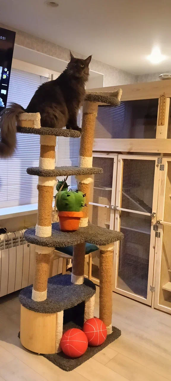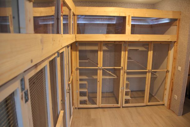 Пространство: вольеры расположены так, чтобы кошки видели друг друга, но могли уединиться при желании.