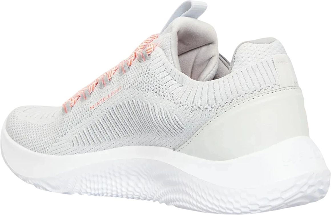 Инновационная промежуточная подошва Flow исключает тяжелую резиновую подметку, делая обувь значительно легче и обеспечивая плавный ход и превосходное сцепление на различных поверхностях. Материал подошвы отличается высокой прочностью. Обновленный верх UA IntelliKnit обеспечивает мягкость прилегания и зональную фиксацию стопы. Плюшевый язычок и широкое основание подошвы гарантируют комфорт и устойчивость при резких боковых движениях.Перепад (Offset): 8 мм. Состав: Верх 84% текстиль, 16% синтетика; подошва 100% EVA.